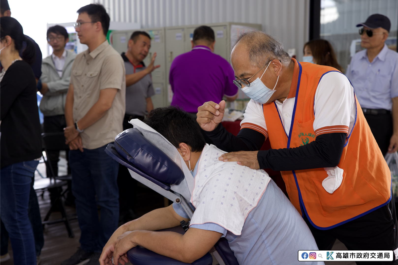 【高雄訊】為關懷第一線公車駕駛的身心健康、提升整體行車安全,市府交通局自今年五一勞動節起,首創將專業視障按摩服務引進公車調度場站,落實「專心、愛心、舒心、榮譽心、同理心」等「五心級駕駛」身心關懷計畫,讓駕駛長在忙碌的工作之餘,也能獲得即時的放鬆與支持,也為視障朋友開創更多就業機會,打造兼具溫度與共好的友善環境。