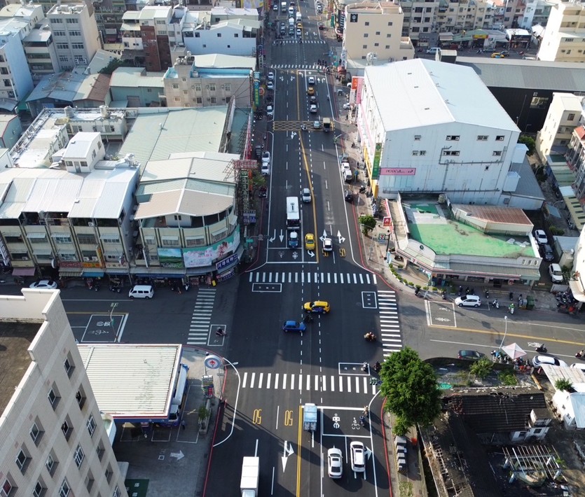 【高雄訊】近年來交通局推動左轉附加車道,改善左轉側撞降低事故率17.2%外,亦改善一輛左轉車擋數十輛直行車問題,但因標線磨除及重繪有舊標線浮現維護問題,故道路重鋪是可以一次到位最好契機。近日高雄市政府交通局與工務局合作,不只是把市區主要幹道重新鋪上柏油,更把握機會「重整道路邏輯」,從車道配置到行人安全,一併系統性調整。